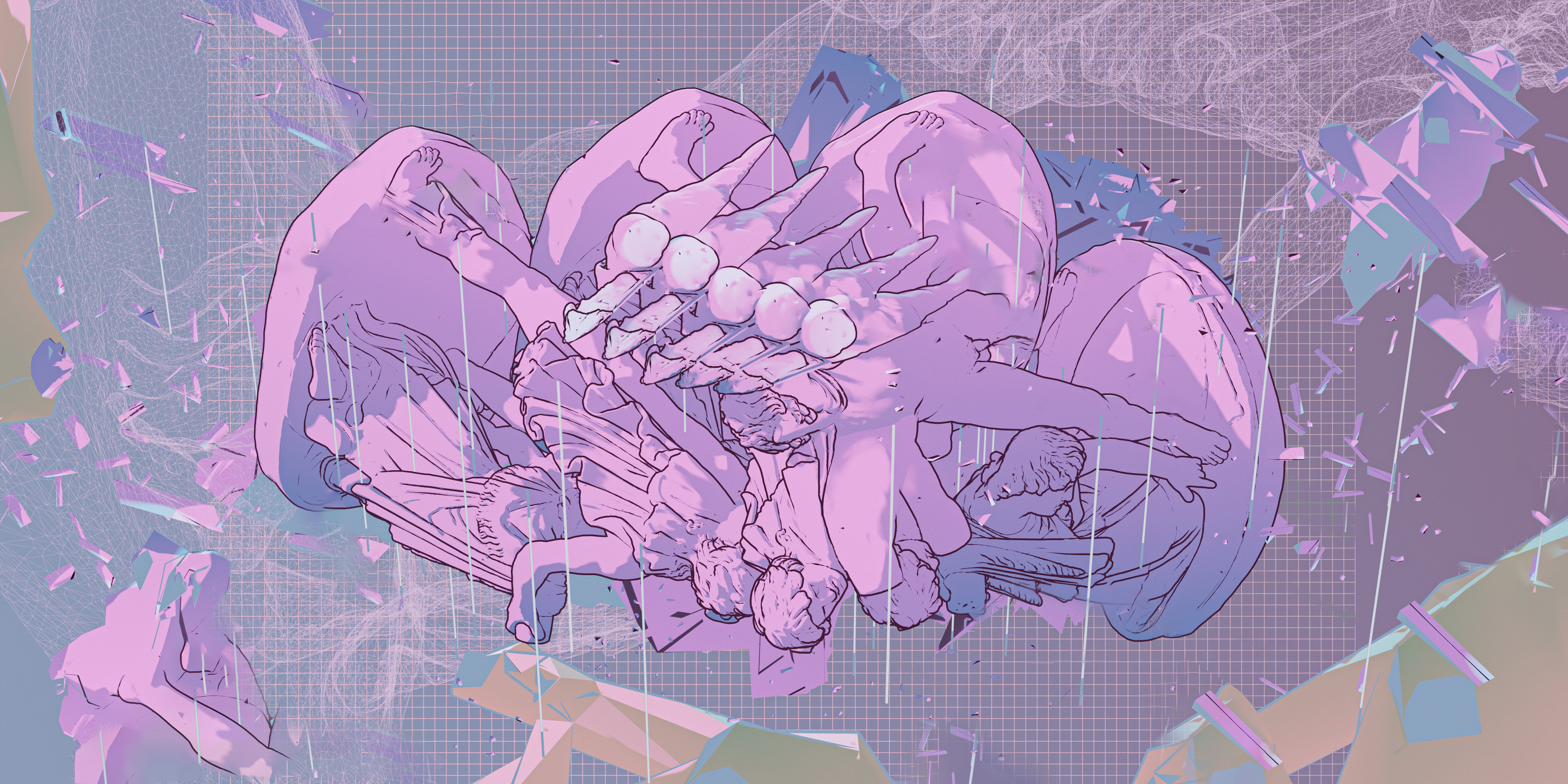 In this relationship between gradients and degradation, a dynamic of equilibrium is played out between the grotesque and the monstrous, the beautiful and the human, that is represented as much in the elements previously mentioned as in the color palettes that oscillate between the delicate and the aggressive. From each of these aspects, the image seems to transmit a tension with something that is constantly calibrating itself to reach the center of the scale and thus perhaps go back to touch ground zero––or to find a primal chaos. But this still holds a retrospective character.