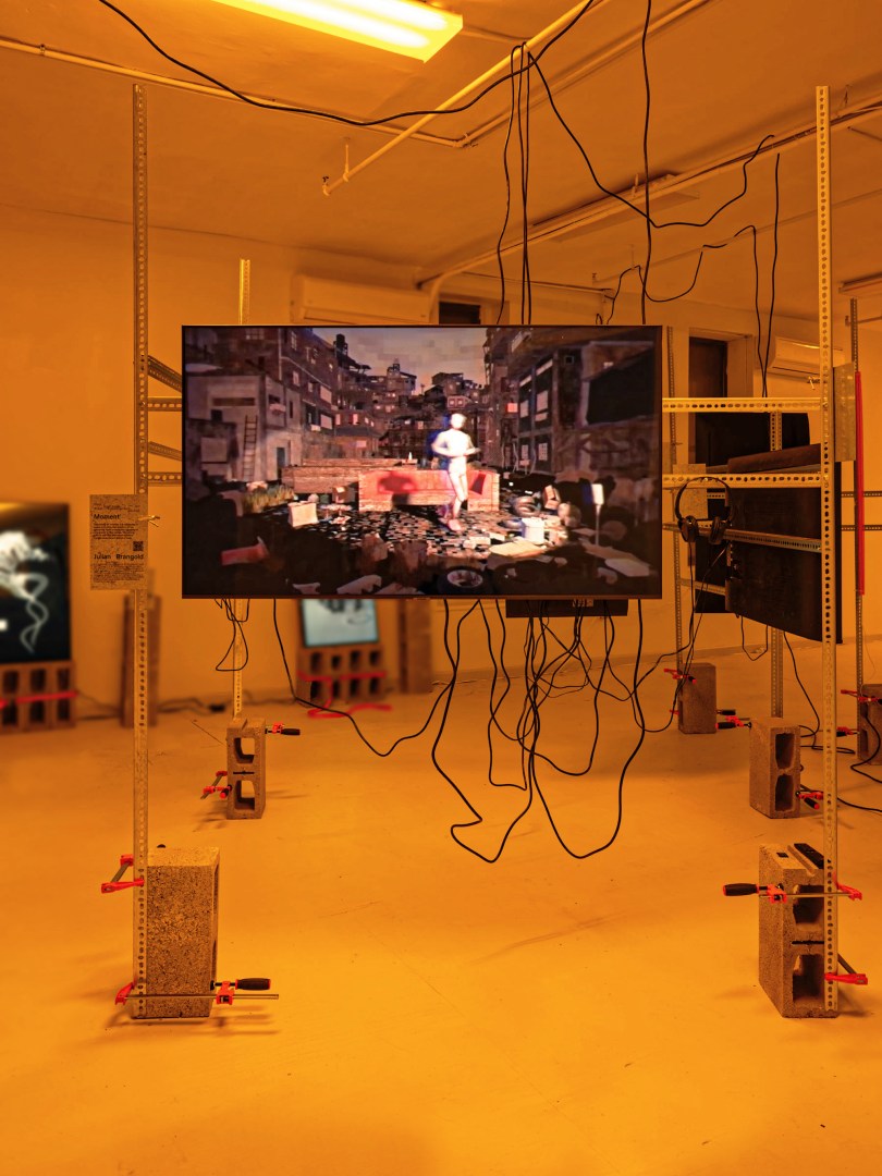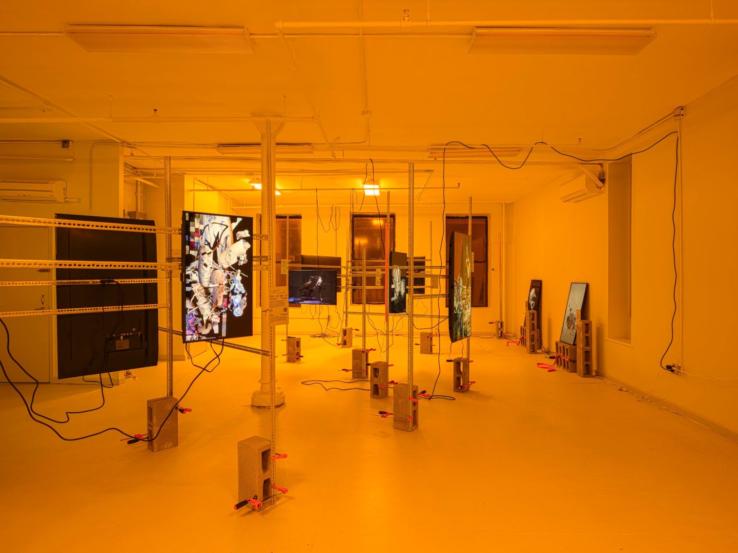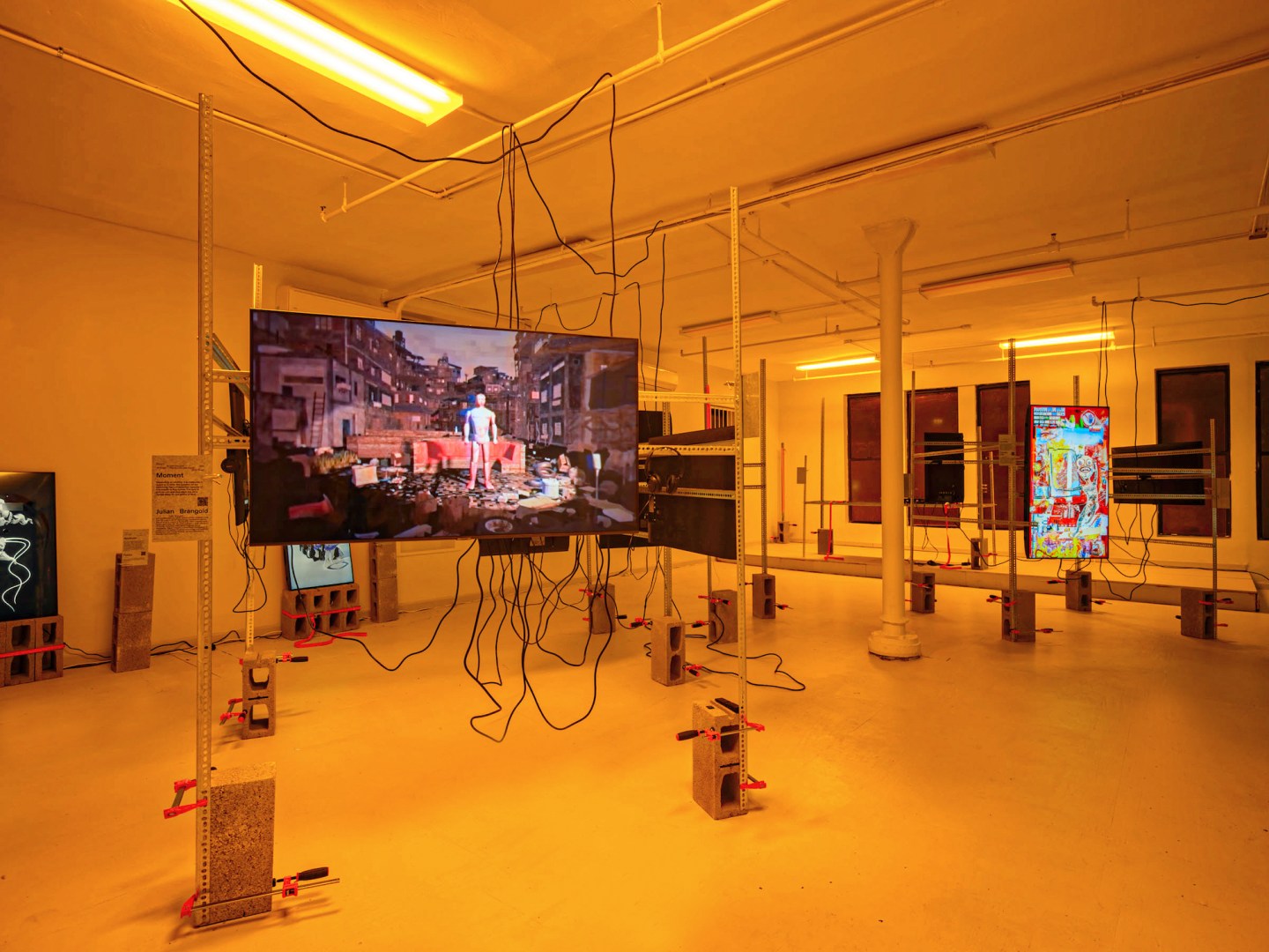 Las obras se presentaron en un dispositivo instalativo diseñado por artistas del colectivo, que reflejó la idea de una construcción precaria y emergente, que cumple la función de estructurar un caos incontrolable. Además se presentó como anexo la sala de Criatura Germinales (gracias al apoyo de Infinite Objects), dónde se exhibieron obras de 10 artistas.